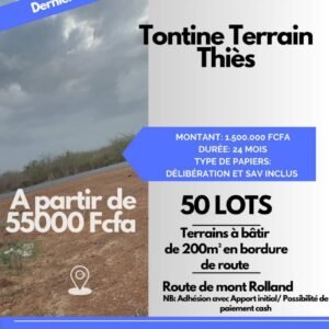 Ce que Waka Business vous propose Tontine Terrain Express Thiès – Paiement sur 13 mois Uncategorized CFA 1.500.000 Commander sur WhatsApp Terrain tontine – Thiès Route de Mont Rolland Uncategorized CFA 1.500.000 Commander sur WhatsApp Terrain Viabilisé à Thiès (225m²) – Eau & Électricité Disponibles Uncategorized CFA 1.800.000 Commander sur WhatsApp Terrain 225m² – Offre Spéciale avec Facilité de Paiement (18 mois) Uncategorized CFA 1.000.000 Commander sur WhatsApp